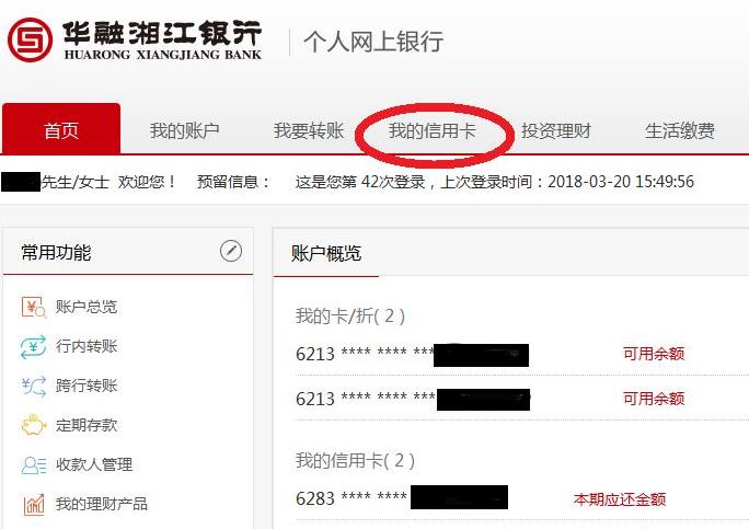 (二)客服人工查询方式:拨打我行客服电话0731-96599,按“2”进入信用卡业务,按“0”进入人工服务。
