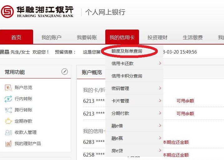 (二)点击“额度及账单查询”。